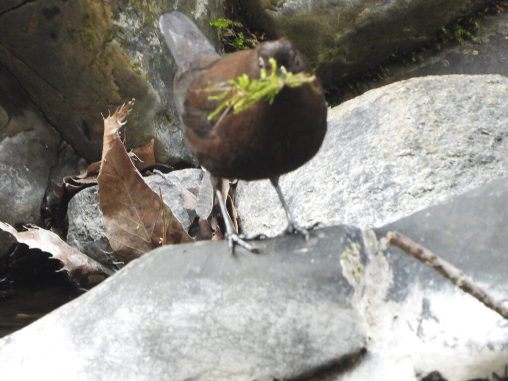 トビが留まっている木のかなり下の川ではカワガラスが苔をついばんでいました。