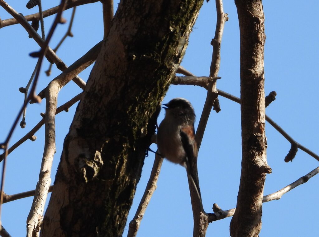 エナガらしき小さな鳥が木の上を動き回っていたので遠くから居場所を特定することに集中しました。